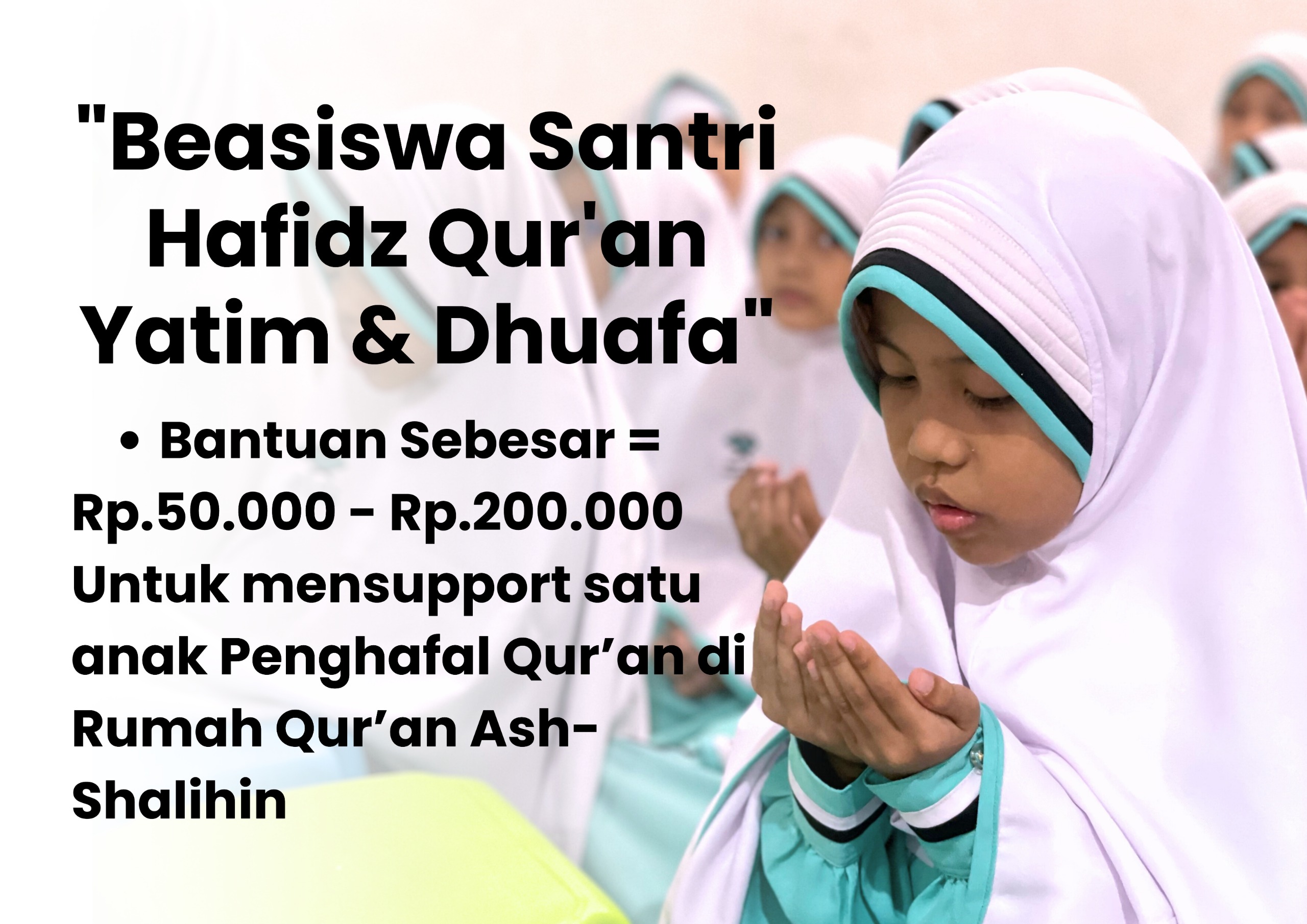 Sahabat, di tengah semangat anak-anak untuk menghafal Al-Qur’an dan belajar secara formal, mari bantu mereka untuk dapat melanjutkan pendidikan Al Qur'an .